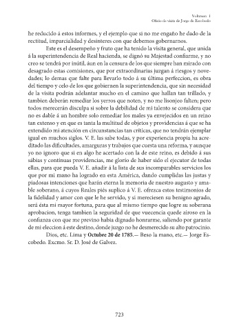 Dios, etc. Lima y Octubre 20 de 1785.- Beso la mano, etc.- Jorge Es-