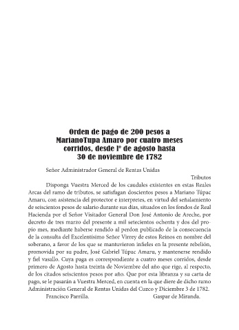Arcas del ramo de tributos, se satisfagan doscientos pesos a Mariano Túpac