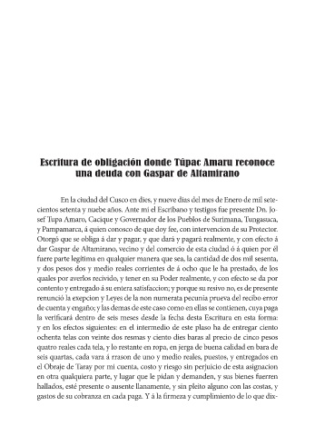Escritura de obligación donde Túpac Amaru reconoce