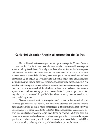 Carta del visitador Areche al corregidor de La Paz