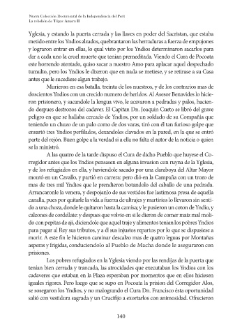 dar a cada uno la cruel muerte que tenian premeditada. Viendo el Cura de Pocoata