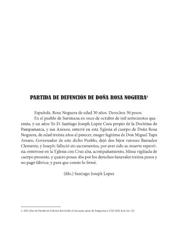 Pampamarca, y sus Anexos, enterré en esta Yglesia el cuerpo de Doña Rosa
