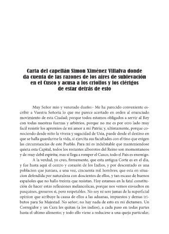 en el Cusco y acusa a los criollos y los clérigos