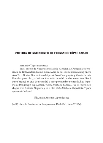 PARTIDA DE NACIMIENTO DE FERNANDO TÚPAC AMARU