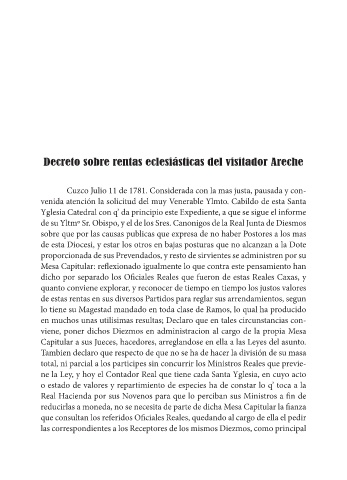 Decreto sobre rentas eclesiásticas del visitador Areche