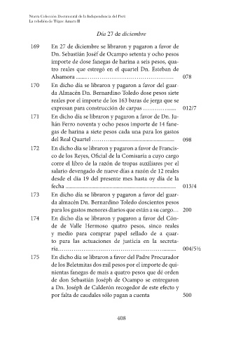 169 En 27 de diciembre se libraron y pagaron a favor de