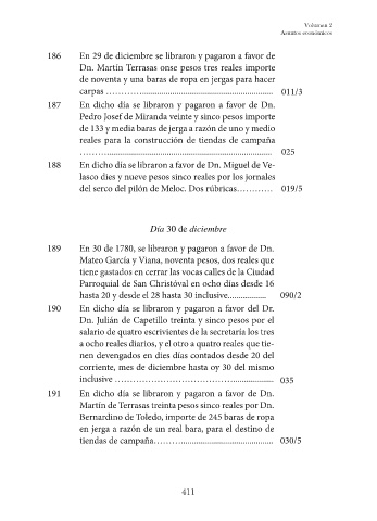 189 En 30 de 1780, se libraron y pagaron a favor de Dn.