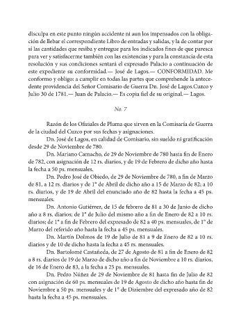 dente providencia del Señor Comisario de Guerra Dn. José de Lagos.Cuzco y