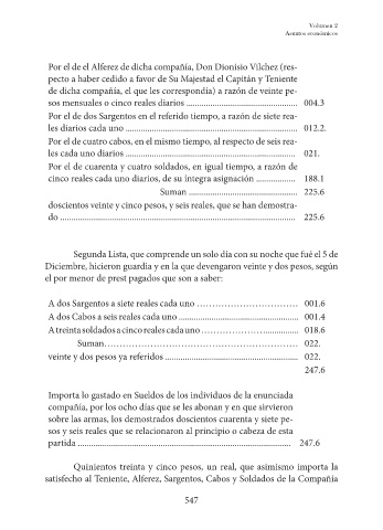 Diciembre, hicieron guardia y en la que devengaron veinte y dos pesos, según
