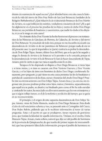la descendencia de Arvieto ni la de Betancur lo han de hacer descendiente de Túpac