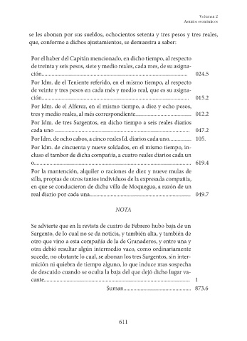 se les abonan por sus sueldos, ochocientos setenta y tres pesos y tres reales,