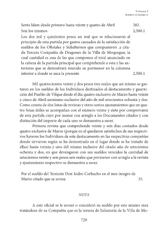 sueldos de los Ofiziales y Subalternos que compusieron .a cita-