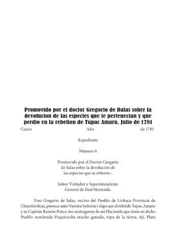 Don Gregario de Salas, vecino del Pueblo de Livitaca Provincia de