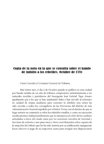 de indulto a los rebeldes. Octubre de 1781
