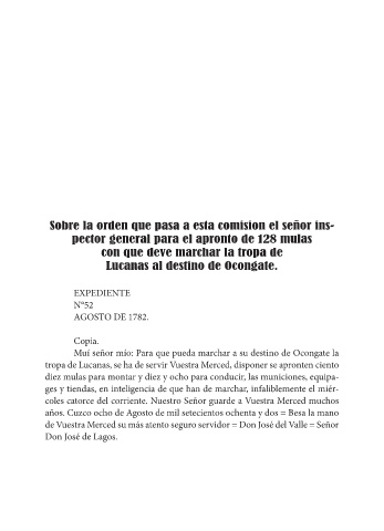 tropa de Lucanas, se ha de servir Vuestra Merced, disponer se apronten ciento