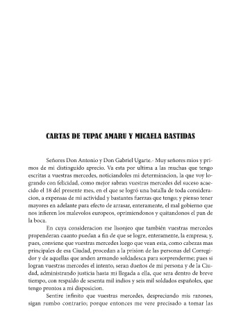 CARTAS DE TUPAC AMARU Y MICAELA BASTIDAS