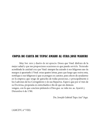 COPIA DE CARTA DE TUPAC AMARU AL CURA JOSE MARURI