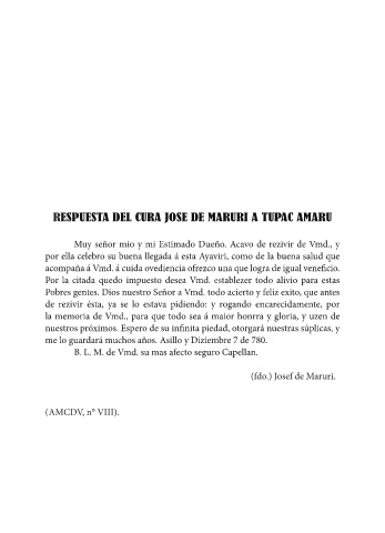 RESPUESTA DEL CURA JOSE DE MARURI A TUPAC AMARU