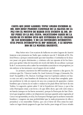 CARTA QUE JOSEF GABRIEL TUPAC AMARO ESCRIBIO AL