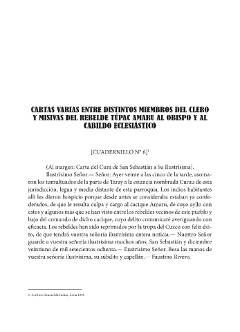 Y MISIVAS DEL REBELDE TÚPAC AMARU AL OBISPO Y AL