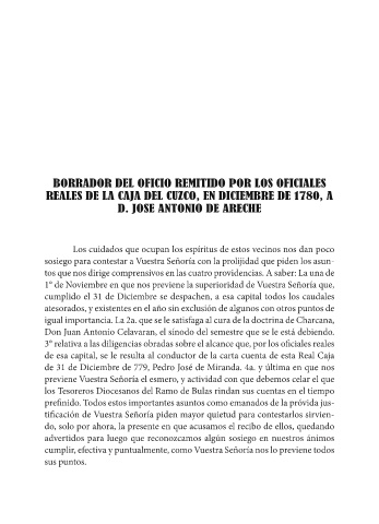 REALES DE LA CAJA DEL CUZCO, EN DICIEMBRE DE 1780, A