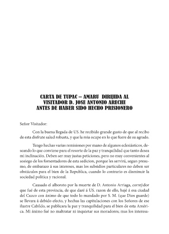 CARTA DE TUPAC – AMARU DIRIJIDA AL