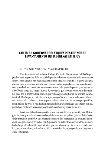 Los indos Tobas han esparcido la voz por su intérprete y caudillo José Quiro-
