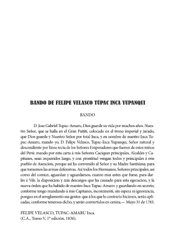 BANDO DE FELIPE VELASCO TÚPAC INCA YUPANQUI