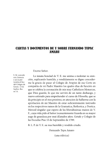 CARTAS Y DOCUMENTOS DE Y SOBRE FERNANDO TUPAC