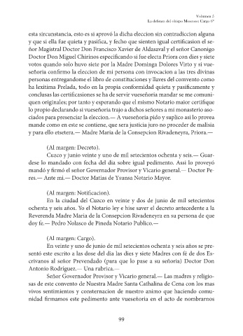 Doctor Don Miguel Chirinos especificando si fue electa Priora con dies y siete