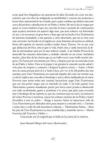cha de eternizarme aqui por la mas inferior criada. A mi Madre Priora la he