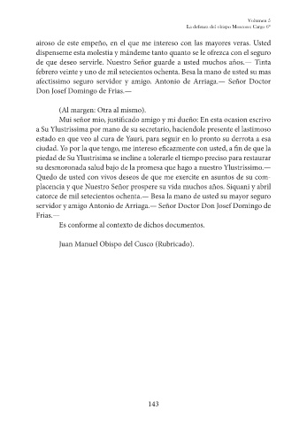 Juan Manuel Obispo del Cusco (Rubricado).