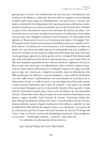 Juan Manuel Obispo del Cuzco (Rubricado).