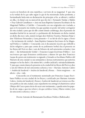 Obispo del Cuzco para efecto de sacar este testimonio, y queda entre los pape-