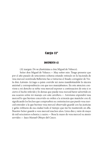 Señor don Miguel de Velasco.— Muy señor mio: Tengo presente que