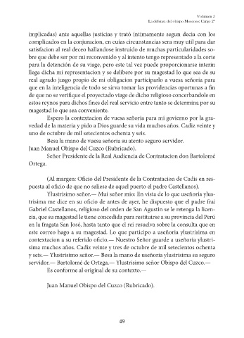 La defensa del obispo Moscoso: Cargo 2º