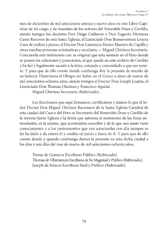 mes de diciembre de mil setecientos setenta y nueve años en este Libro Capi-