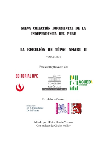 NUEVA COLECCIÓN DOCUMENTAL DE LA INDEPENDENCIA DEL PERÚ LA REBELIÓN DE TÚPAC AMARU II VOLUMEN 6 Este es un proyecto de: En colaboración con: Editado por: Héctor Huerto Vizcarra Con prólogo de: Charles Walker
