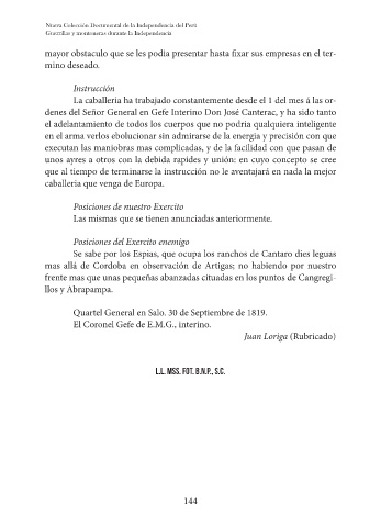 Quartel General en Salo. 30 de Septiembre de 1819.