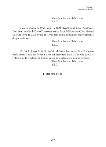 Don Francisco Paula Otero Titulo en forma á favor del Presvitero Don Manuel