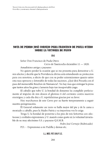 NOTA DE PEDRO JOSÉ CORNEJO PARA FRANCISCO DE PAULA OTERO