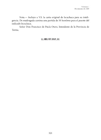 Nota.— Incluyo a V.S. la carta original de Iscuchaca para su inteli-