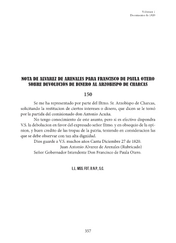 NOTA DE ALVAREZ DE ARENALES PARA FRANCISCO DE PAULA OTERO