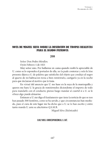 NOTA DE MIGUEL SILVA SOBRE LA DESERCIÓN DE TROPAS REALISTAS