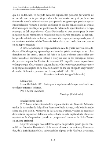 trador de Alcavalas de Palpa Don Francisco Paula Arraga, y de lo informado