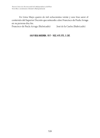 contenido del Superior Decreto que antecede a don Francisco de Paula Arraga
