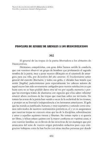 PROCLAMA DE ALVAREZ DE ARENALES A LOS HUANCAVELICANOS