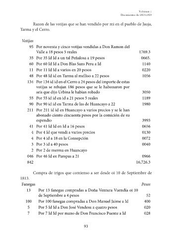 Razon de las votijas que se han vendido por mi en el pueblo de Jauja,