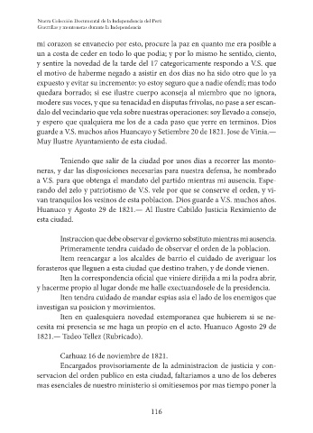 Carhuaz 16 de noviembre de 1821.