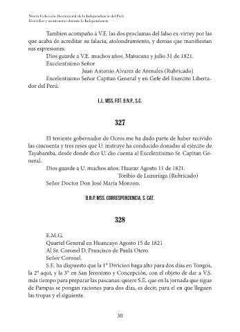 Dios guarde a U. muchos años. Huaraz Agosto 11 de 1821.